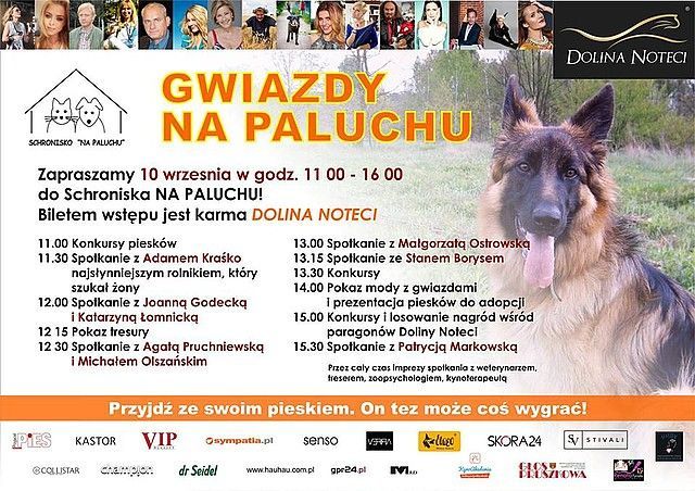 W programie zaplanowano mnóstwo atrakcji, m.in. spotkania z gwiazdami, specjalistami od zdrowia i kondycji psów, konkursy (również dla psów, bo organizatorzy zapraszają wszystkich wraz z czworonogami). Na zakończenie całego dnia znane osoby będą prezentować psy z Palucha, które szukają domu. Może ktoś z odwiedzających znajdzie w ten sposób nowego, ogoniastego członka rodziny? AW