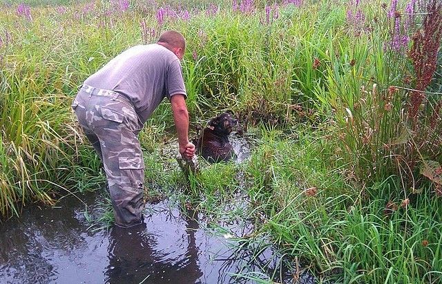 „Zaczęliśmy poszukiwania, brodząc w wodzie, krzakach i chaszczach, po chwili naszym oczom ukazał się przerażający widok… Środek rozlewiska rzeki, a na nim pies: skulony, przerażony, walczący ostatnimi siłami o to, by nie zasłabnąć i utrzymać się nad wodą!” – opisali sytuację na Facebooku wybawcy suni, którą przywiązano do pnia i smyczą, i sznurkiem, by mieć pewność, że się nie wyzwoli. Jednak suczka była na tyle mądra, że wdrapała się na kępę trawy i tam zziębnięta czekała z nadzieją na ratunek.