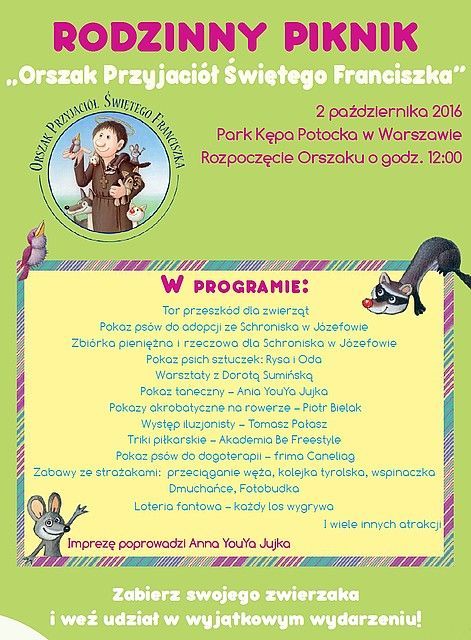 Więcej o Orszaku Przyjaciół św. Franciszka na Facebooku: https://www.facebook.com/events/1658286654499813/. Patronem medialnym imprezy jest portal Psy.pl.