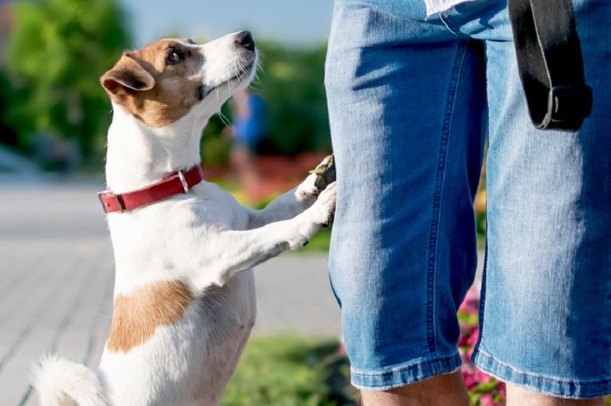 Skakanie na ludzi może być próbą wymuszenia czegoś, na przykład jedzenia. Sposobem, by psiak w takich sytuacjach na nas nie skakał, jest unikanie karmienia go podczas takiego zachowania. Zamiast tego można poprosić psa, by wrócił na swoje legowisko i tam poczekał na przysmak.