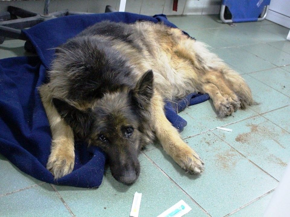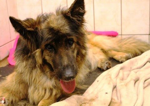 Był w bardzo złym stanie. Natychmiast trafił pod opiekę weterynaryjną w łódzkim schronisku. Cały czas trwa walka o jego życie.