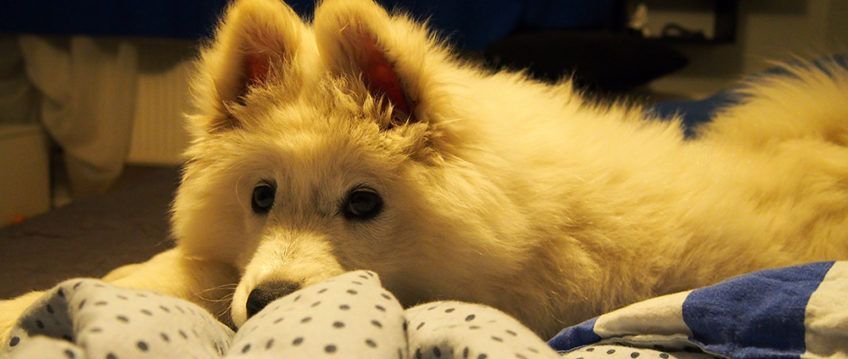 Mały samojed jest o wiele spokojniejszy, więc nie sprawia problemów. Niemniej jeszcze nigdy nie został całkowicie sam – jak już, to zostaje z Legion.