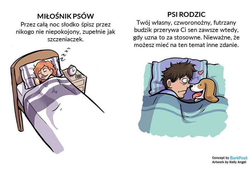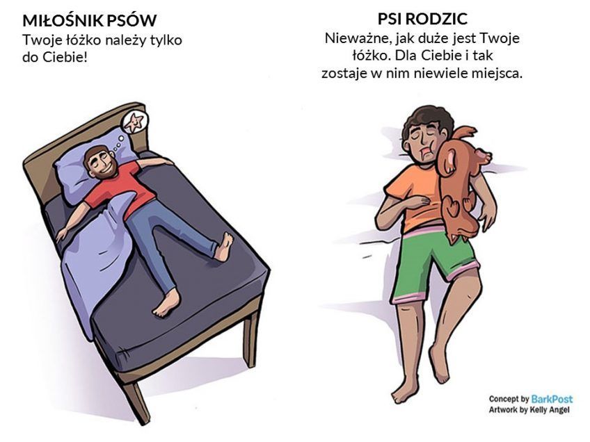 Uważasz się za wielbiciela psów, tak? Oglądasz na YouTube’ie filmy o szczeniaczkach, a potem zasypiasz na dużym, wygodnym łóżku. Wszystko dobrze, tyle że psia mama lub psi tata nie mają czasu na oglądanie takich filmów. Oni nawet nie mają zbyt wiele miejsca w swoim łóżku, by się w nim położyć (nie mówiąc już o tym, jak wyglądają oczekiwania co do spania z psem, a jak rzeczywistość). Chcesz poznać więcej różnic? Obejrzyj 7 fenomenalnych obrazków!