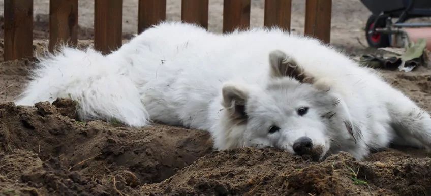 Przykładowo nasz samojed bardzo lubi się brudzić, a w szczególności upodobał sobie kopanie. Po takiej zabawie jest cały szary – od pyska po ogon. Jednak cały ten brud sam z niego opada po pewnym czasie. Wystarczy wrócić do domu i zazwyczaj psisko jest ogarnięte.